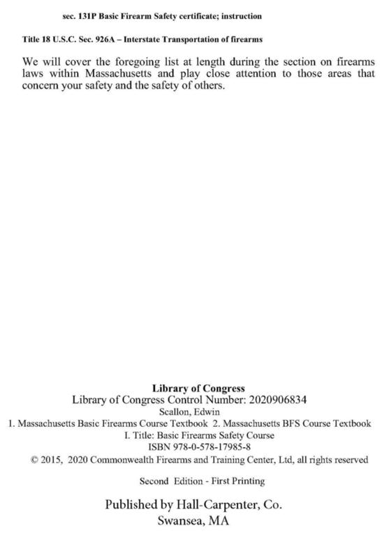 Chapter 140 IS YOUR APPENDIX OF ALL THE CURRENT FIREARM LAWS IN MASSACHUSETTS